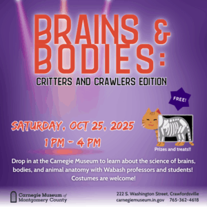 October 28, 2023 | Visit the Carnegie Museum to learn about brains and bodies with Wabash College professors and students. Join us for this FREE