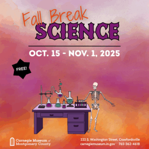 April 8, 2024 | Take in the total eclipse with the Carnegie Museum behind the Crawfordsville District Public Library with educational activities and fun eclipse-themed