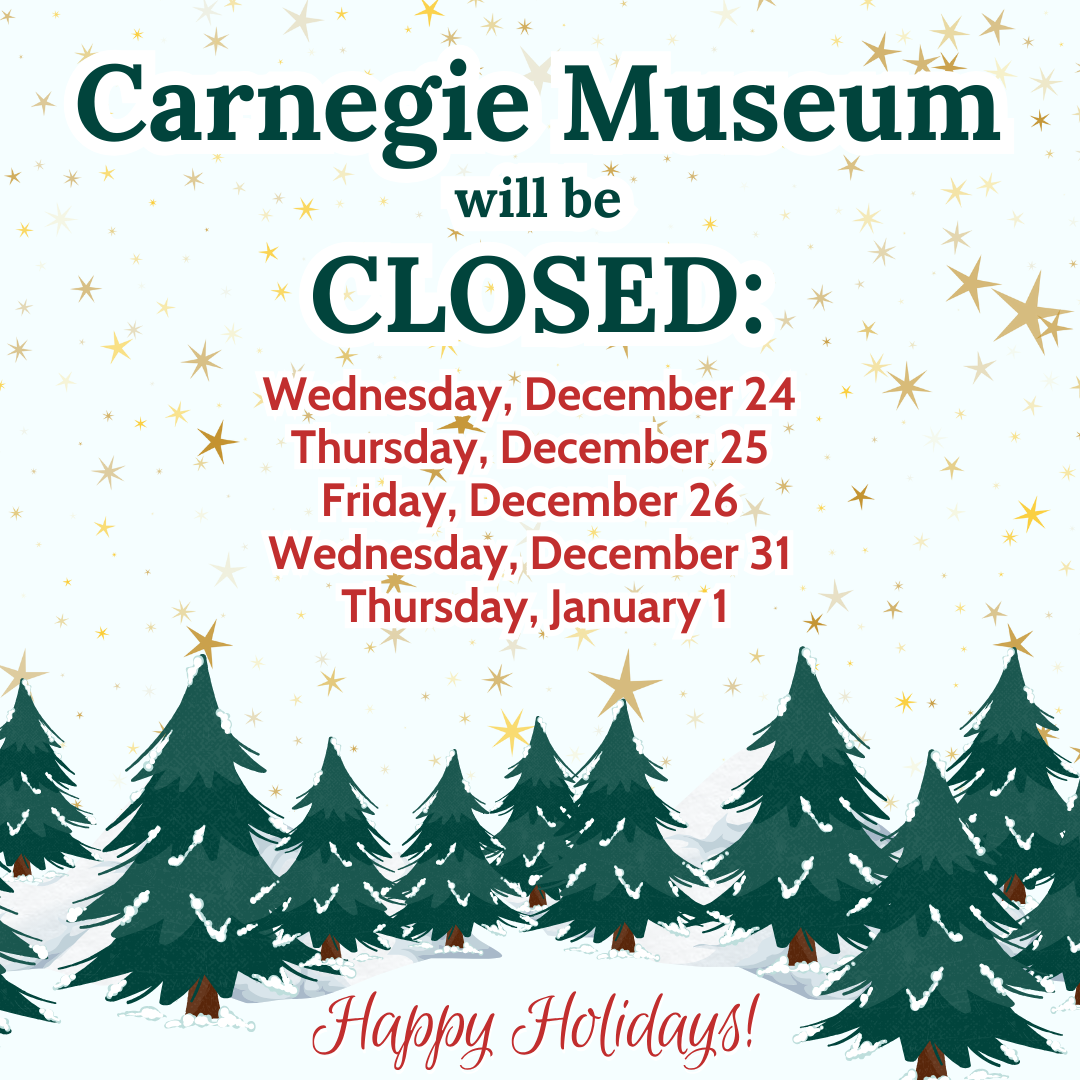 The Carnegie Museum will be closed December 24 – December 26, and December 31 – January 1.